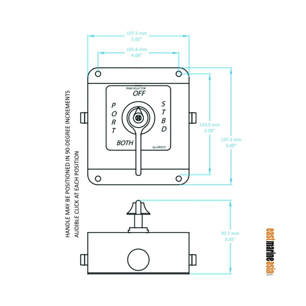Four Positions: Tank-1, Tank-2, Tanks 1 & 2, Off. Audible ?click? at each handle position. Selector valve is C83600 bronze construction.
