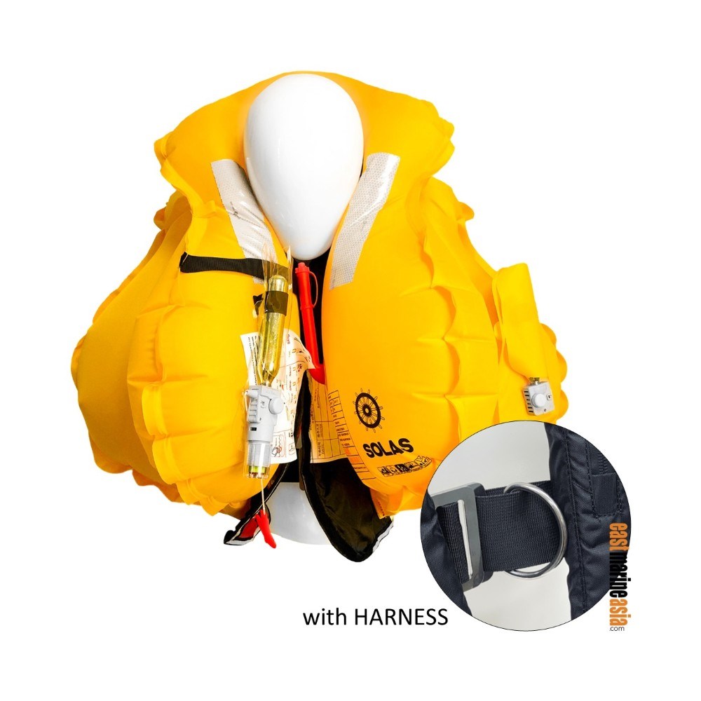 EM369 SOLAS 150N automatic / manual inflatable life jacket with harness.