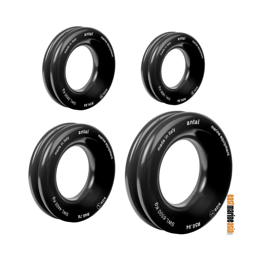 Antal Solid Ring has a thinner boy and a wider hole (compare to Antal Low Friction Ring) with the same extreme working loads.  The outer groove is suitable for a hang line.